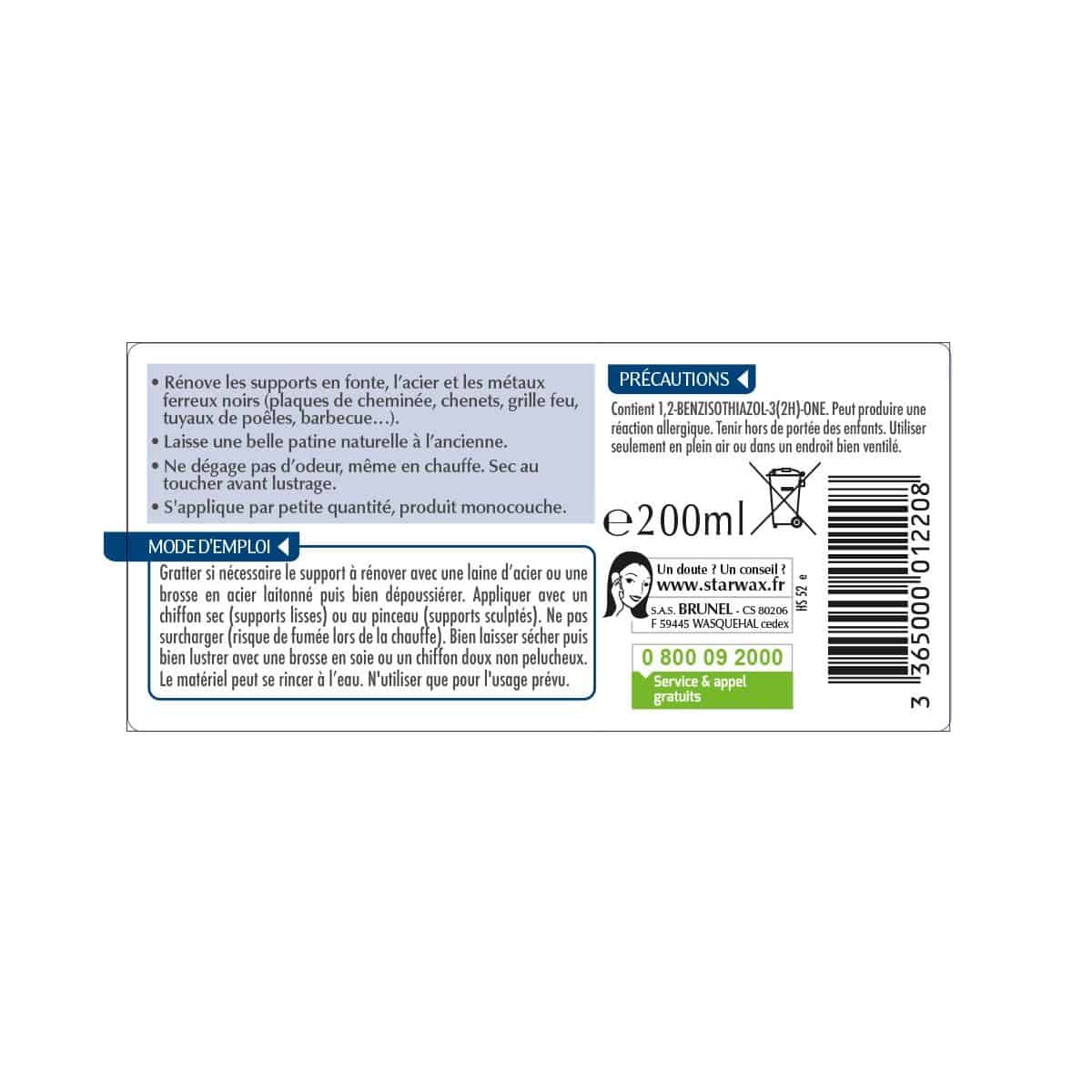 Le Rénovateur pour fonte rénove tous les supports en fonte, en acier ou métaux ferreux noirs ( plaques de cheminée, chenets, grille feu, tuyaux de poêles, barbecue…). Véritable crème de beauté pour plaques de cheminée, chenets, poêles et accessoires en fonte, il laisse en une seule couche, une belle patine naturelle à l’ancienne. Il ne dégage pas d’odeur, même en chauffe.